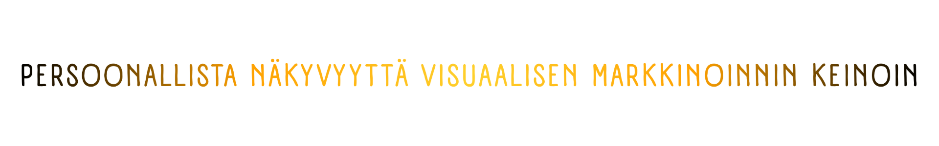 Luomme yrityksellesi visuaalisen ilmeen joka on selkeä, mutta PERSOONALLINEN, jotta sinä voit käyttää aikasi olennaiseen eli ydintyöhösi. Haluamme sinun erottuvan eduksesi massasta rohkealla ja innovatiivisella tavalla, säilyttäen helppouden ja yksinkertaisuuden. Laatu, luovuus ja luotettavuus ovat arvomme, jotka ohjaavat työtämme. Arvostamme selkeää hinnoittelua: hintamme ovat läpinäkyvät ja pysyvät, jotta sinun ei tarvitse huolehtia yllättävistä lisäkuluista.
